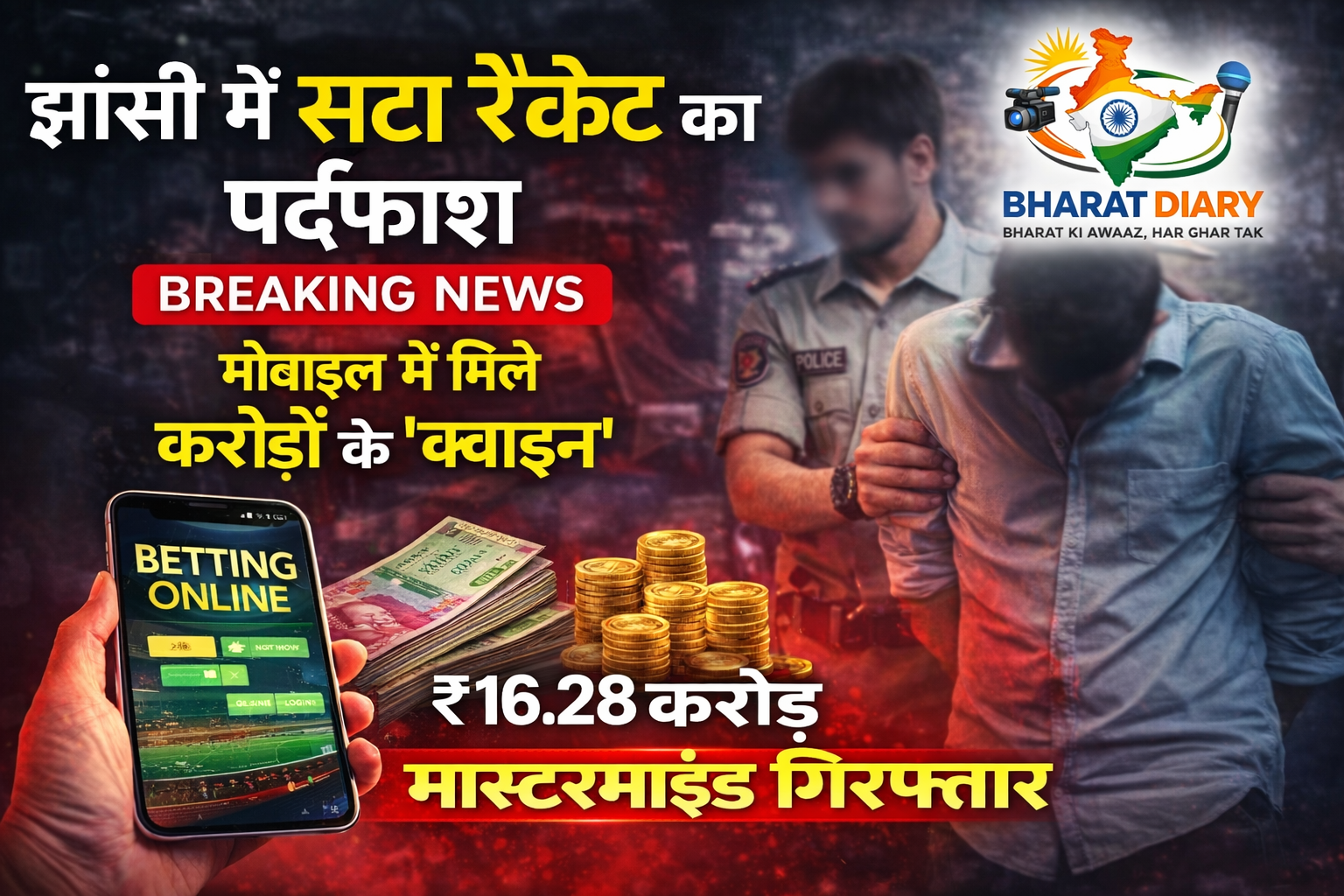झांसी में सट्टा रैकेट का बड़ा पर्दाफाश: मोबाइल में मिले करोड़ों के “क्वाइन”, मास्टरमाइंड गिरफ्तार
