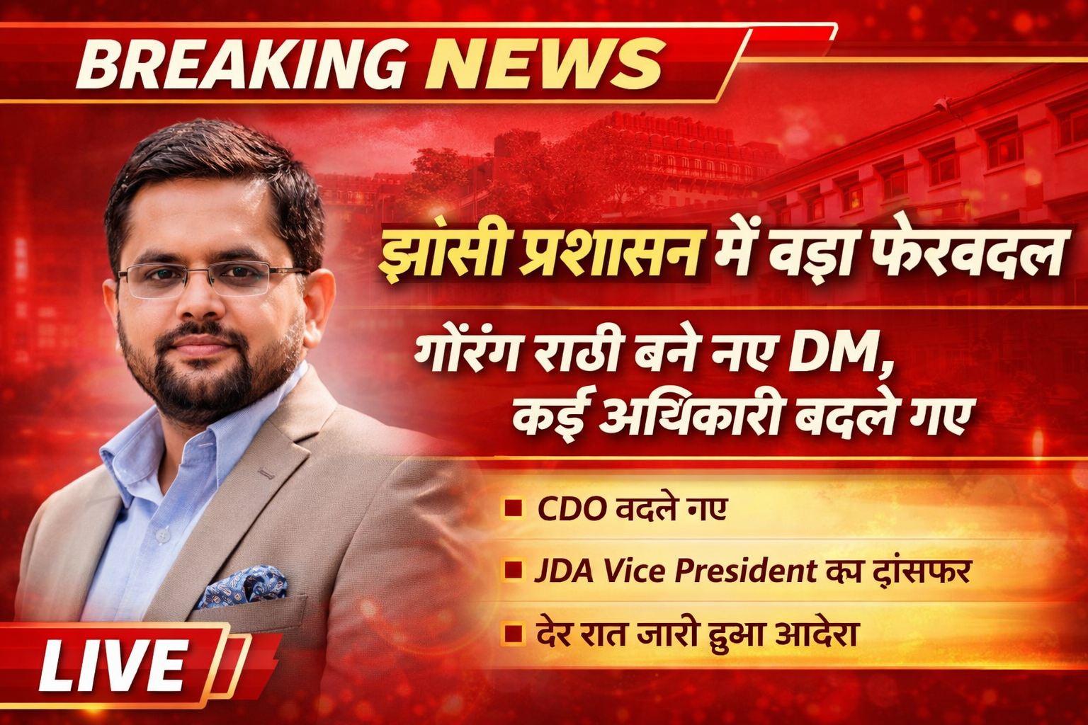 झांसी में बड़ा प्रशासनिक फेरबदल: नए DM बने गौरंग राठी, कई अधिकारी बदले